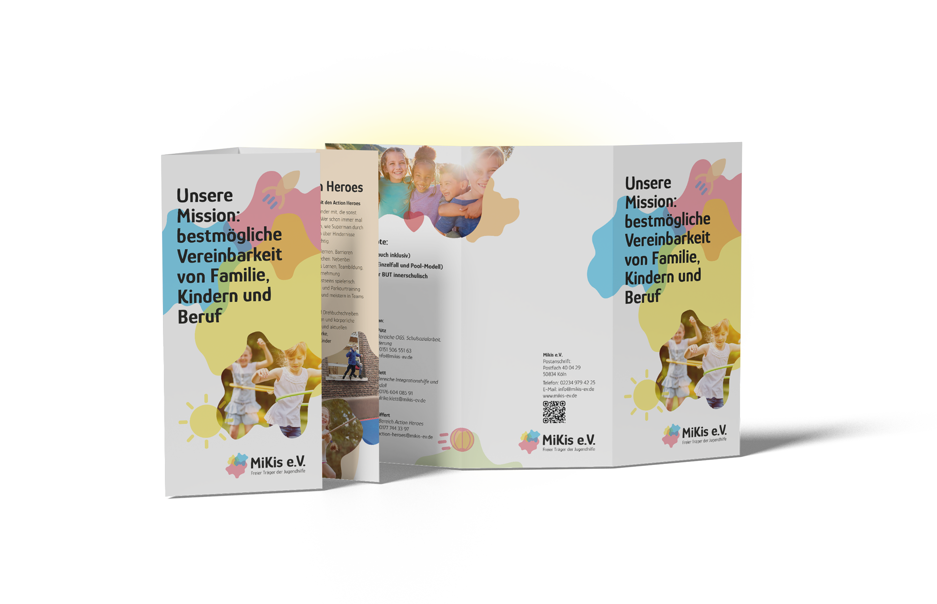Von Visitenkarten über Briefbögen bis hin zum DIN-Lang-Flyer, Stempeln und Vorlagen für Ferien- und AG-Programme – die gesamte Geschäftsausstattung wurde ebenso im neuen CI gestaltet. So tritt der MiKis e.V. jetzt in allen Bereichen agil, einheitlich und professionell auf.